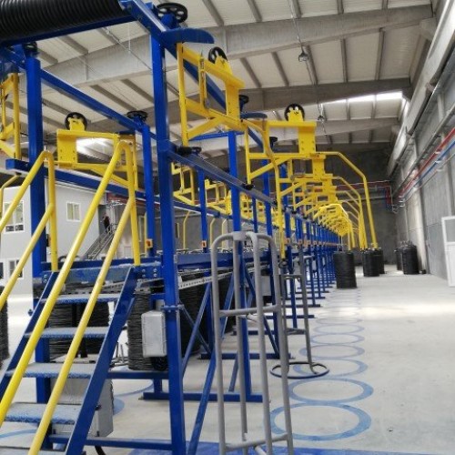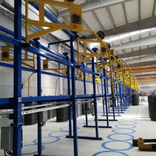 Tel çekmeden gelen telin üretim hattına girişinde doğrultma makarası ve tel koptu sensörü bulunmaktadır.