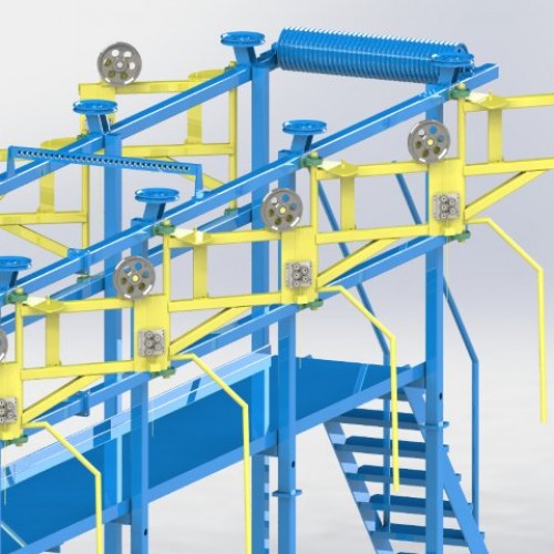DMI Pay-Off (Verici kafalar) Makinesi, galvaniz hattına kaplama için gönderilecek olan telin sepetten açılmasını ve fırına yönlendirilmesi için geliştirilmiş, daha düşük sürtünme teması ile daha düşük operatör etkileşimi sağlamayı amaçlamıştır.